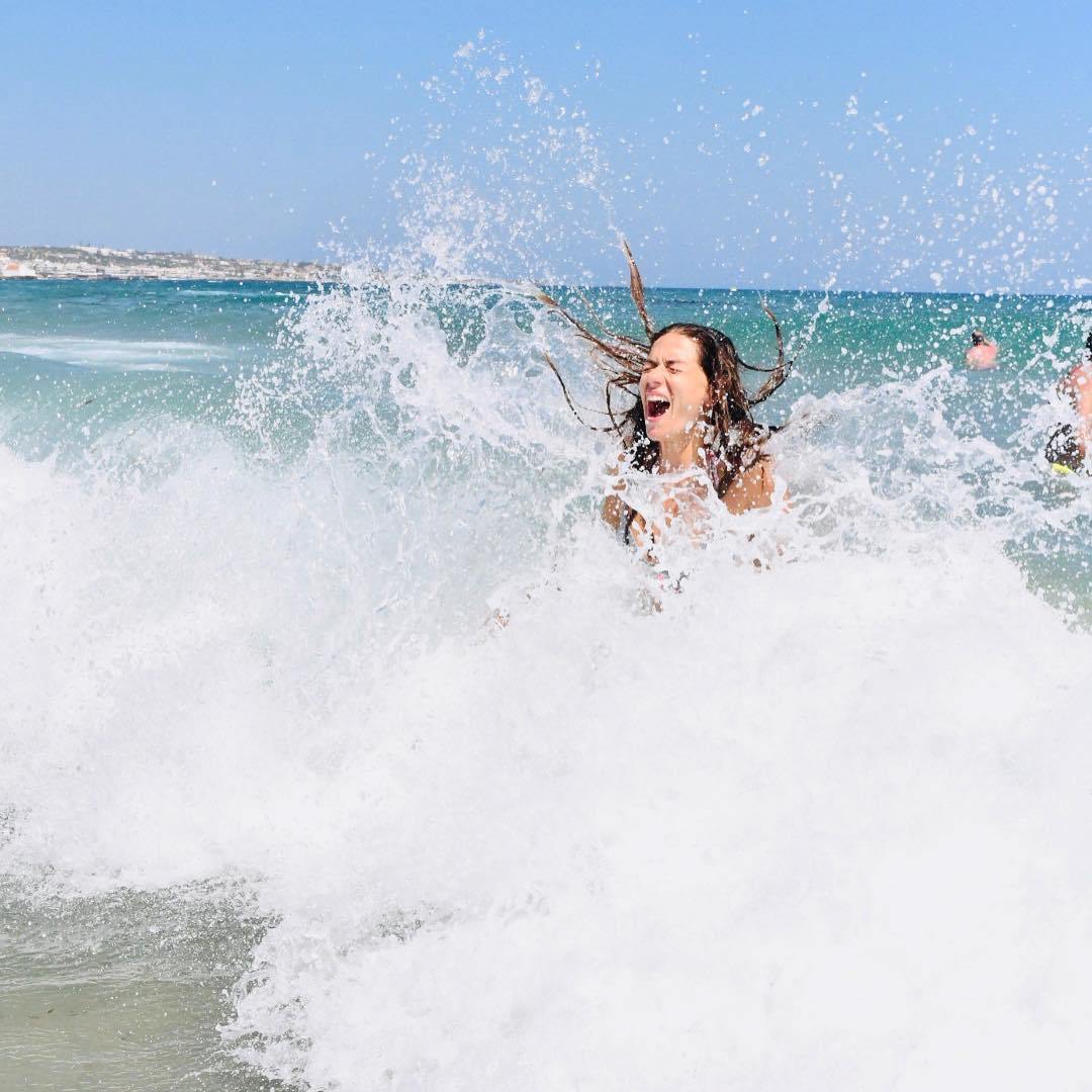 Ο σεφ εργάζεται στο νησί κι εκείνη τον ακολούθησε και παράλληλα κάνουν και τις διακοπές τους. Η ηθοποιός έκανε τις βουτιές της φορώντας μπικίνι μαγιό και πόσταρε στο instagram φωτογραφίες να παίζει με τα κύματα. Διανύει την καλύτερή της περίοδο κι αυτό φαίνεται.